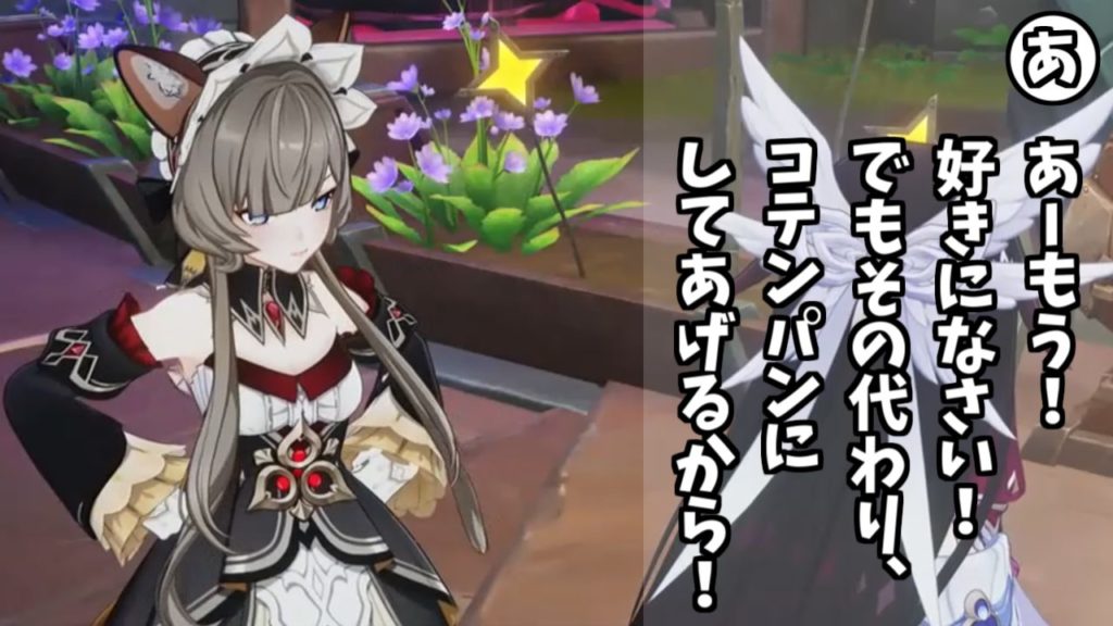 祈月の夜で猫耳サンドローネがコロンビーナと遊ぶ時のセリフ。
