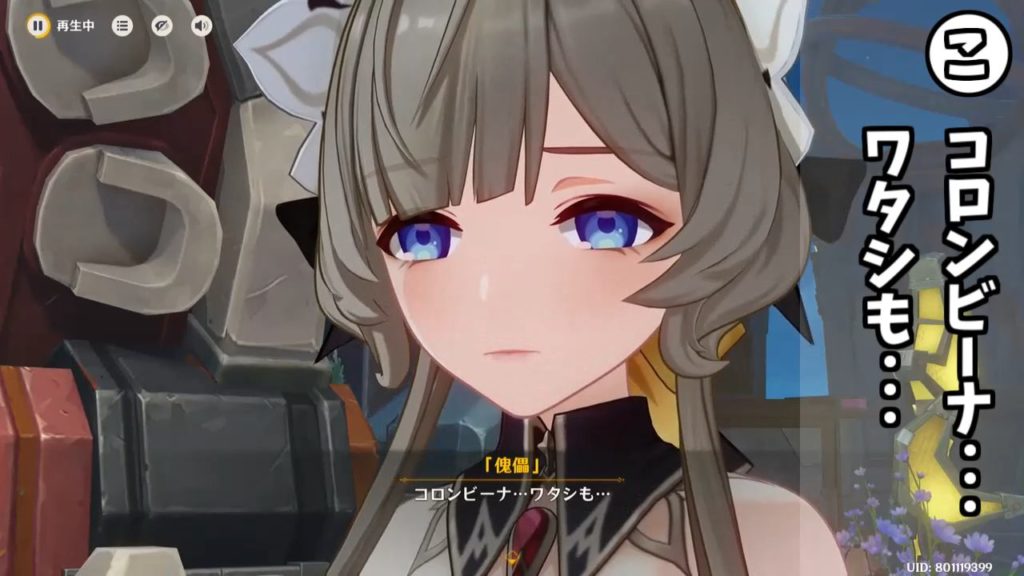 寂しそうにコロンビーナの名前を出してワタシ「も」の部分で