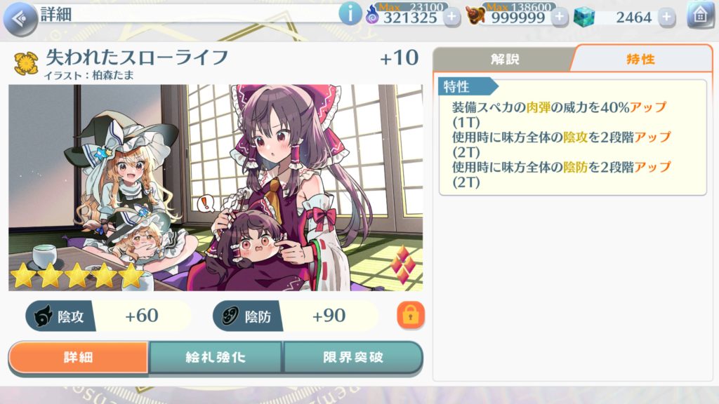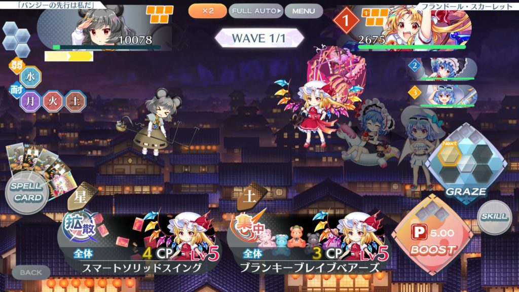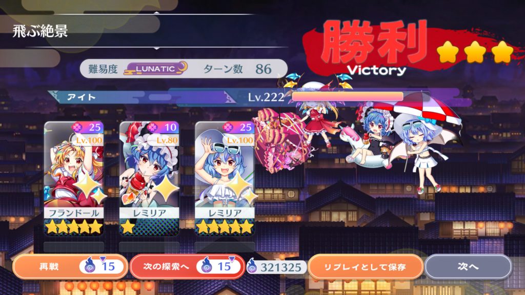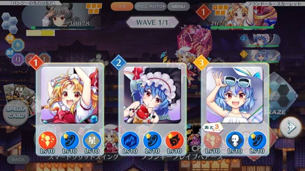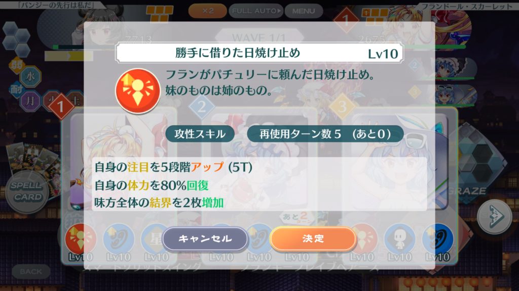 今回は真ん中のレミリア(Ce9)と右のレミリア(C3)の結界増加スキルのみを使用する。